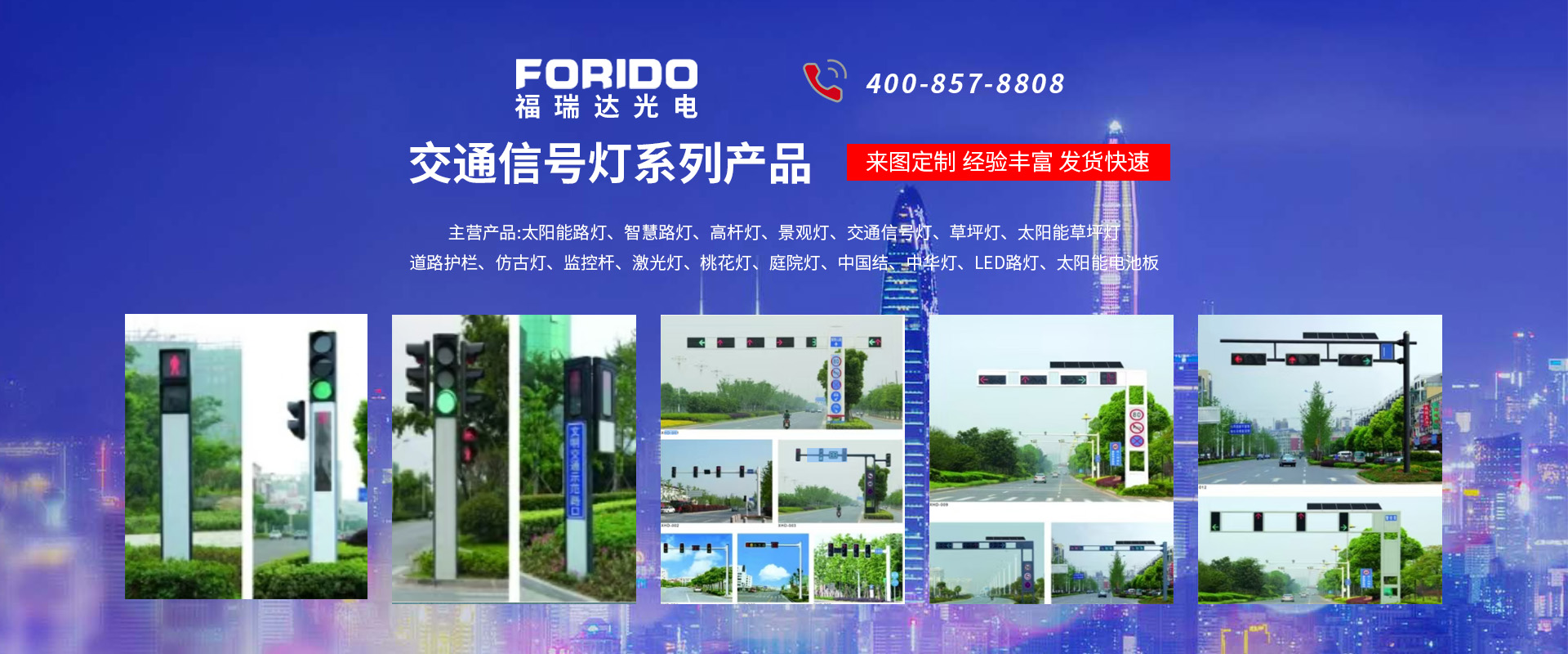 揚州福瑞達光電科技有限公司位于淮左名都歷史文化名城、中國路燈制造基地揚州市北郊菱塘工業(yè)園,公司占地面積76000平方米,注冊資金10518萬元,擁有高級技術嫻熟的員工280多人,擁有大型折彎機、激光切割、數控注塑機、壓鑄機、自動埋弧焊、氣焊、彩色粉末靜電噴塑等大型自動化設備,我公司是一家集設計、研發(fā)、生產、銷售、施工安裝服務為一體的戶外交通照明產品制造商,主要生產智慧路燈、太陽能路燈、LED路燈、高桿燈、景觀燈、交通信號燈、交通標志牌、通信鐵塔、路跨鋼結構、公交站臺、太陽能光伏組件、景點亮化、樓宇亮化工程的設計施工等。公司秉承開拓創(chuàng)新、銳意進取、精誠服務的企業(yè)精神,堅持以“誠信為本、技術為先、服務是金”的合作理念,我們憑借先進的制造工藝、優(yōu)質的產品質量、合理的市場價格和完善的售后服務贏得了廣闊的市場和客戶的信賴。 我公司已通過ISO9001質量體系認證、ISO14001環(huán)境管理體認證,CQC產品認證,中國節(jié)能產品認證,通過“CCC”強制性產品認證,具有市政總承包,照明,交安,設計等資質···